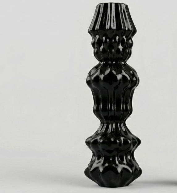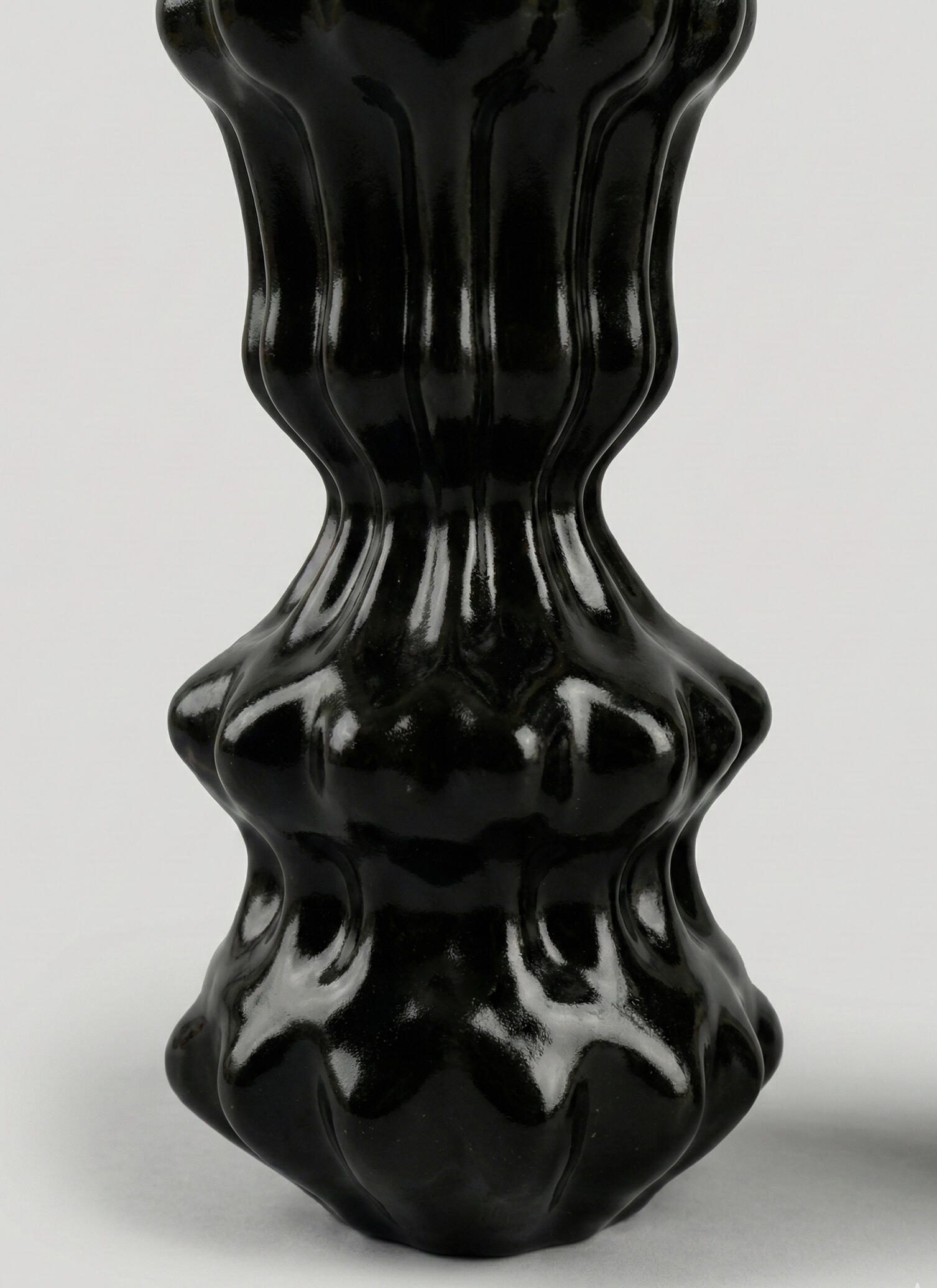 Deep NoirA study in shadow and silhouette. The Deep Noir console absorbs light to reveal form, relying on the interplay of soft highlights across its ribbed, sculptural legs. It stands as a dark anchor, grounding the airiness of the surrounding space with a tactile elegance.Ornamental yet restrained, classical yet unmistakably contemporary, the table occupies a rare balance between presence and poise. Its sculptural base introduces depth and rhythm without excess, drawing from classical proportions while reinterpreting them through a modern, pared-back lens.The base is not cast, but grown. Using a custom clay extrusion process, the stoneware is printed in continuous layers. This technique realizes complex, undulating geometries that defy the constraints of the traditional potter's wheel—digital precision merging with the soulful durability of fired ceramic.